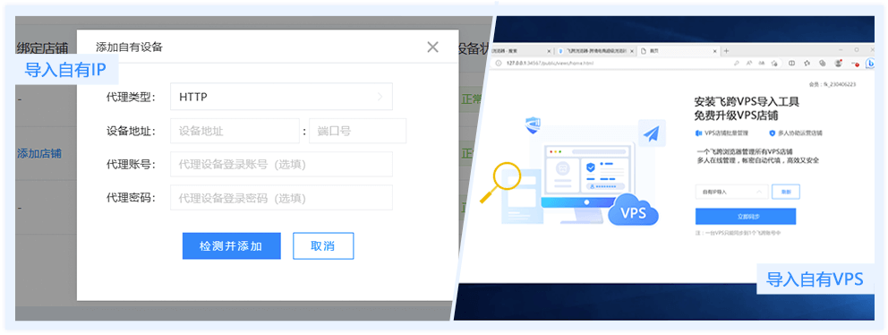 飞跨支持导入其他平台的代理环境,以及VPS设备,只需要简单的操作,就能在飞跨实现统一管理店铺。