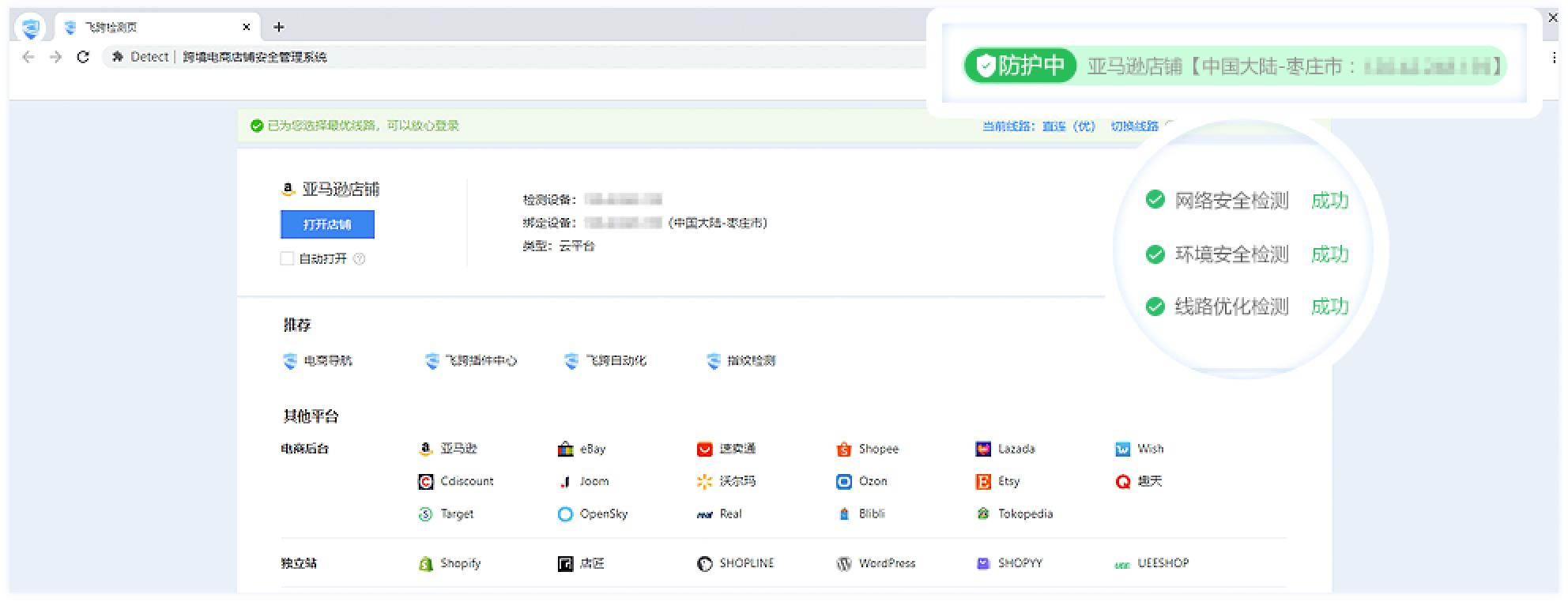 访问时店铺环境实时检测,安全提速访问跨境店铺